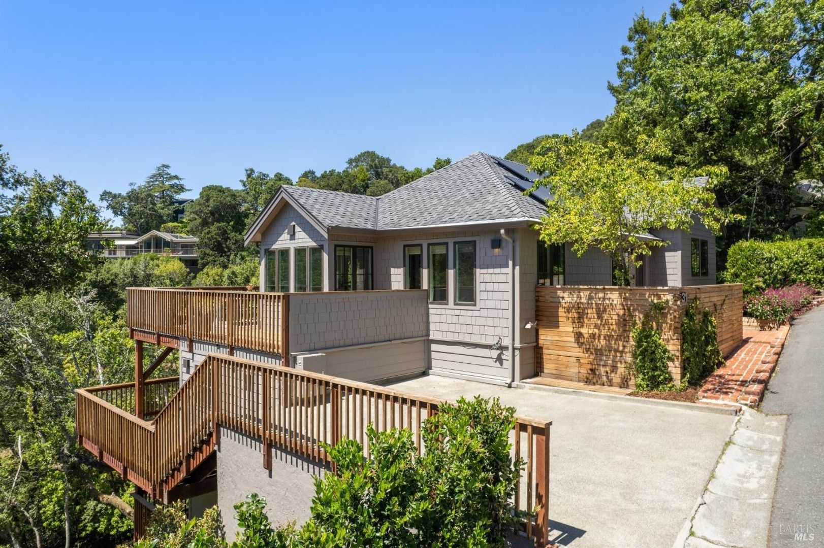 Welcome to the Newly Renovated Ross Four Bedroom & Three Bathroom Home, a stunning property nestled in the heart of Ross, CA. This home, completely rebuilt in 2021, boasts high-end finishes throughout, offering a luxurious living experience. The property features four spacious bedrooms, two on each level, and three full bathrooms, providing ample space for comfort and convenience. The large primary suite is a haven of relaxation, while the expansive family room with built-ins is perfect for entertaining. The home is bathed in amazing natural light, thanks to its thoughtful design. The new central heating and AC system ensures year-round comfort, while the solar amenities make for sustainable living. The property sits on a private 1/2 acre parcel, complete with a basketball court and multiple decks on each level, offering breathtaking views of Mt. Tam and Mt. Baldy. Additional storage rooms cater to all your storage needs. The home is conveniently located close to downtown Ross and San Anselmo, in the desirable Winship neighborhood, known for its amazing school district. Experience the perfect blend of luxury, comfort, and convenience in this remarkable Ross home.